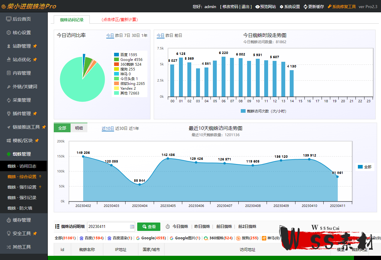 18、超好用后台管理:后台使用简单,轻松管理百万蜘蛛